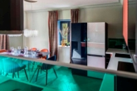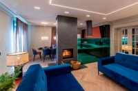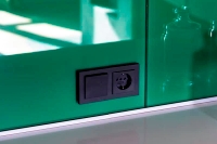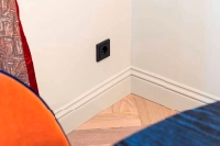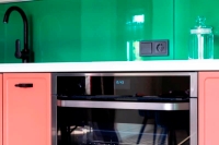 Поскольку семья большая, дизайнер основательно поработала с пространством. Печь убрали, заменили её камином — он останется и главным отопительным прибором, и визуальным центром и кухни, и гостиной. При этом для удобства оба помещения будут объединены. Однако «границу» двух пространств выделила перегородка из изумрудного стекла, отсветы от которого создают дополнительное настроение. Впрочем, как и цветные откосы увеличенных в пол окон — они стали «рамами», обрамляющими вид на роскошный сад героев. Для главной роли розеток и выключателей команда проекта выбрала дизайн серию Gira Е2, получилось очень уместно, стильно и функционально. Полный выпуск можно посмотреть на сайте www.peredelka.tv.